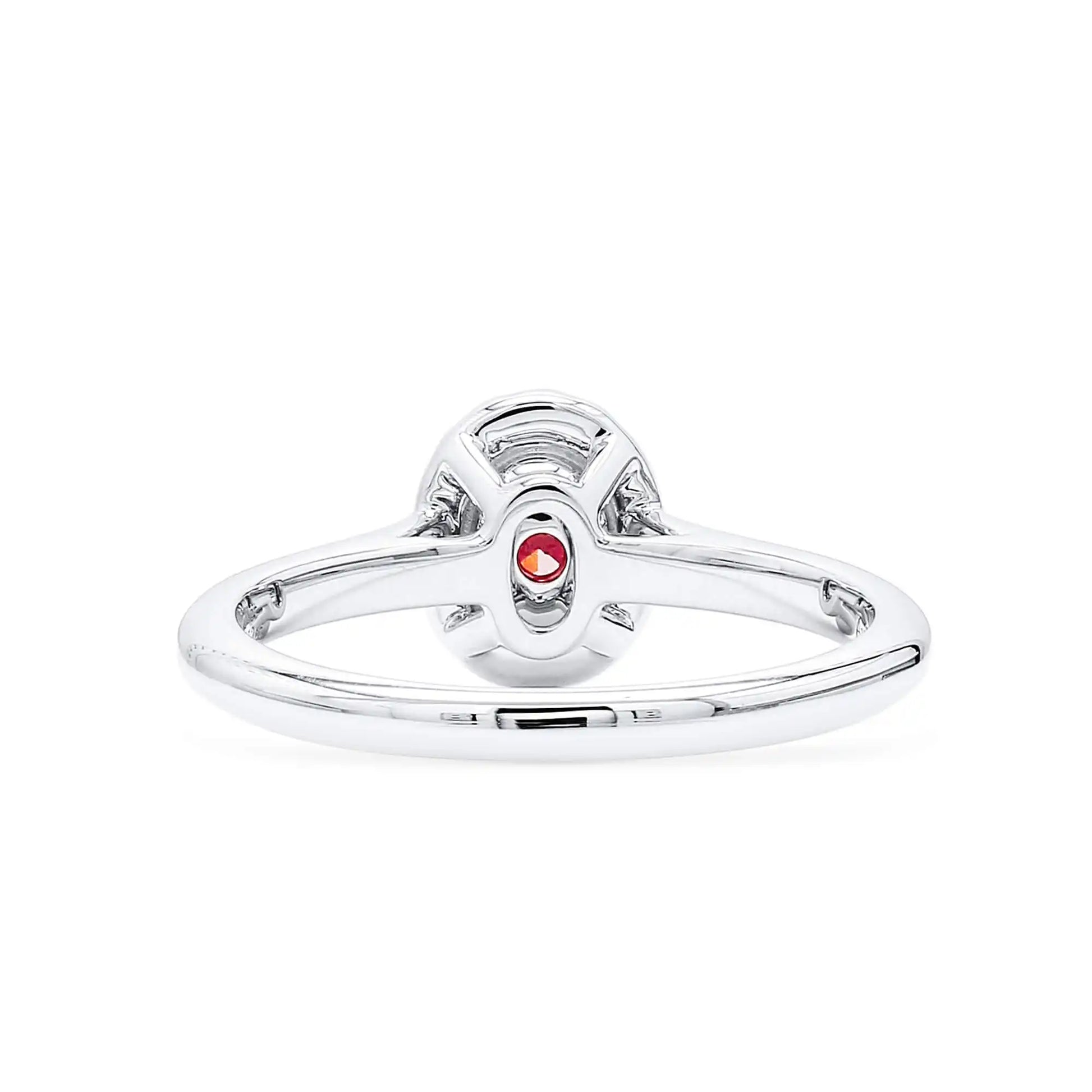 This fancy purplish-pink diamond ring is elegant and faultless. Its primary stone, a 0.38 oval-shaped fancy purplish-pink diamond with clarity SI2 diamond, is carefully set in durable 18k white and rose gold. The primary stone is surrounded by 16 beautiful round cut diamonds. total weight of 0.49 carats.