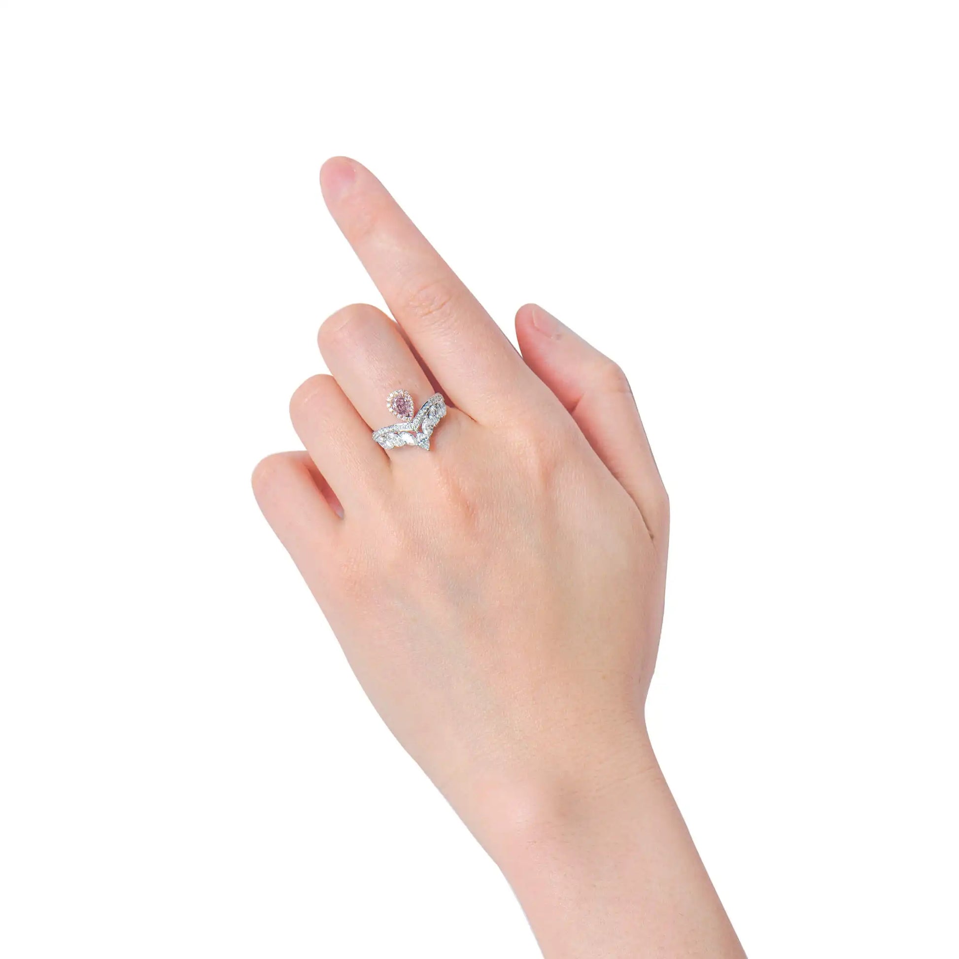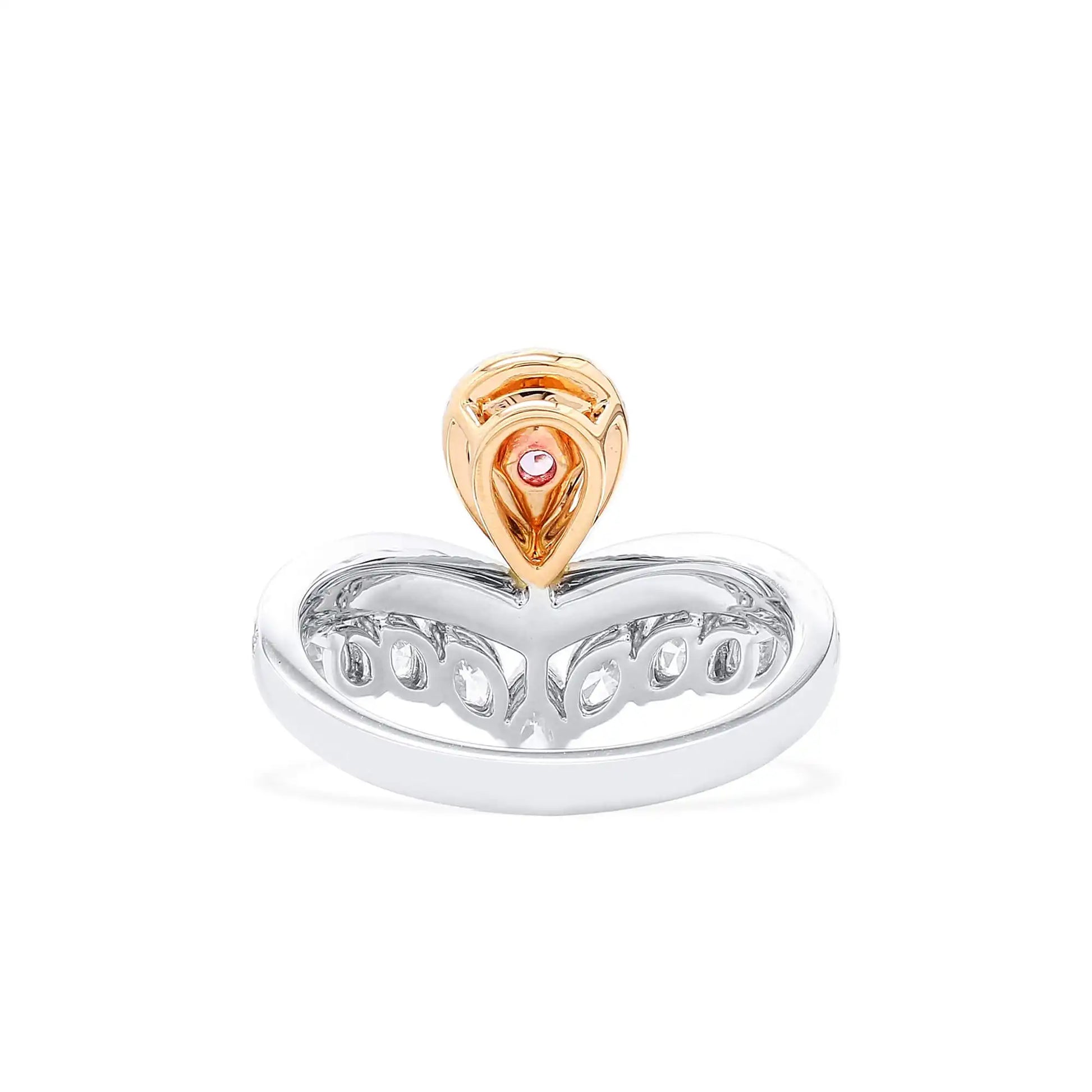 Savor the astonishing elegance and sophistication of our Natural Diamond Ring, a stunning piece of jewelry. Its center has a captivating 0.39 carat pear-shaped fancy purple pink diamond. Shining White Diamonds totaling 1.29 carats compliment this unique and alluring diamond, bringing brightness and contrast to the design. This ring, with a total carat weight of 1.68, is a real representation of elegance and richness. This ring, which is made of 18K White and Rose Gold, is a testament to fine craftsmanship and classic beauty.
