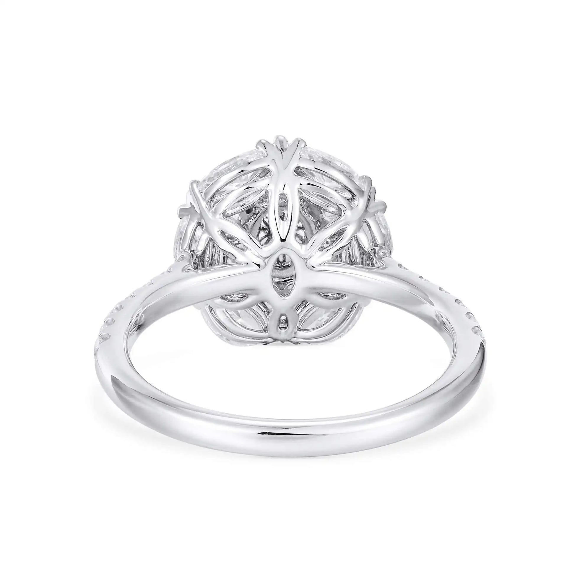 This exquisite ring has a unique twist: it has an 18k white gold band with a hint of rose gold, and it contains a 0.36 carat light pink oval shape diamond clarity SI1, 6 heart shape color D-F clarity SI weighing 0.85 carats, 6 marquise shape color E-F clarity SI1, and 14 brilliant round cut color D-F clarity VS. Anybody will undoubtedly notice this ring. GIA certified. a total of 2.04 carats in weight.