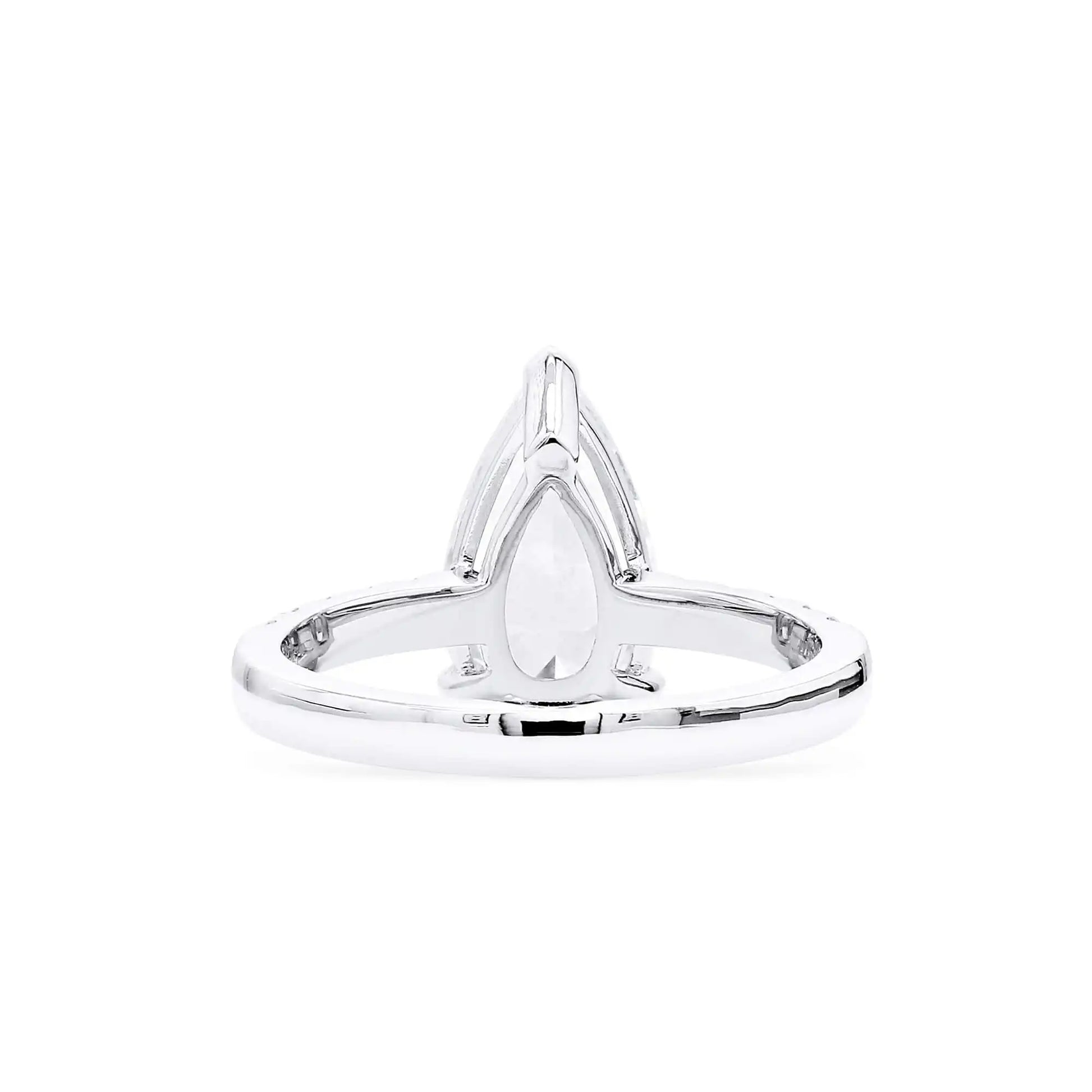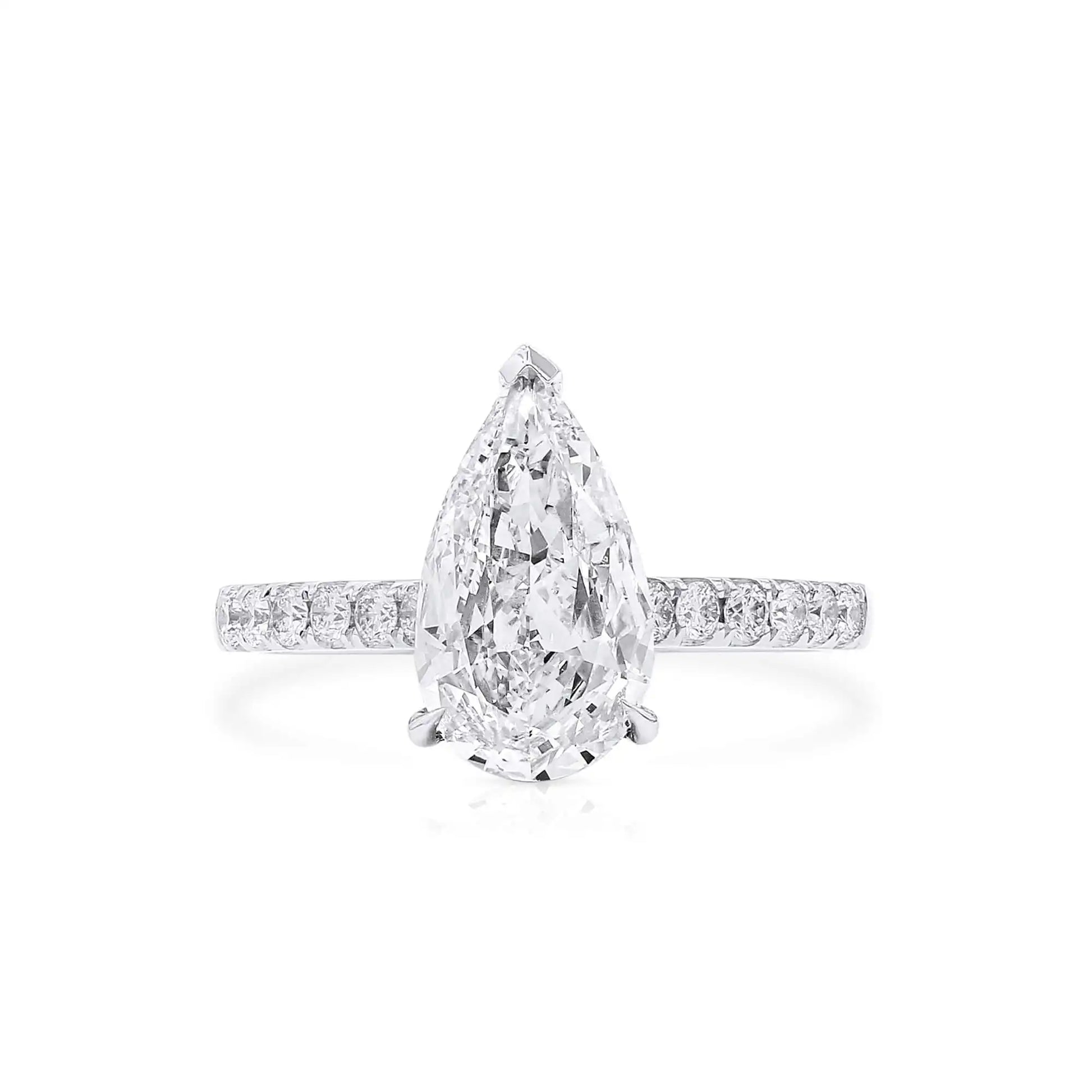 Experience the classic elegance of the Natural White Diamond Ring, which has a 2.28 carat total carat weight and a beautiful pear-shaped centerpiece weighing 2.01 carats. With a clarity grade of SI1 and a warm, inviting color grade of I, the diamond exudes sophistication and elegance. The ring has 12 beautiful side stones totaling 0.27 carats of white diamonds, with color grades ranging from D to F and clarity grade of VS, which perfectly complement its attractiveness. The ring is expertly created in 18K white gold and weighs 3.09 grams, which contributes to its opulent appeal and guarantees its authenticity and quality. The diamond's 12.26 x 7.04 x 3.57 dimensions draw attention to its exquisite proportions and striking presence. There is currently a size 6.25 available.