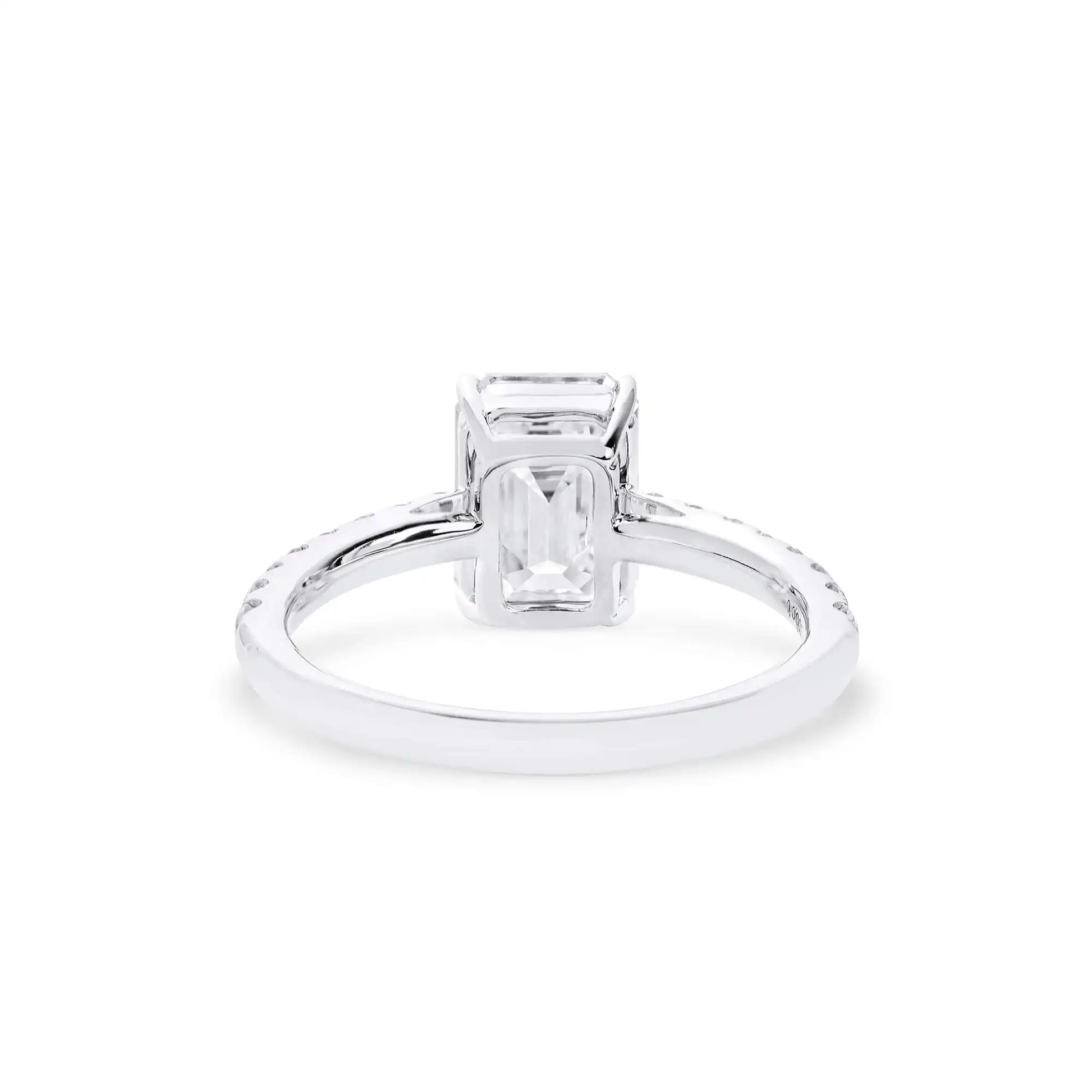 The White Diamond Ring is a classically stunning diamond ring with side stones weighing.48 carat and an emerald cut white diamond weighing 2.00 total carats in the middle.