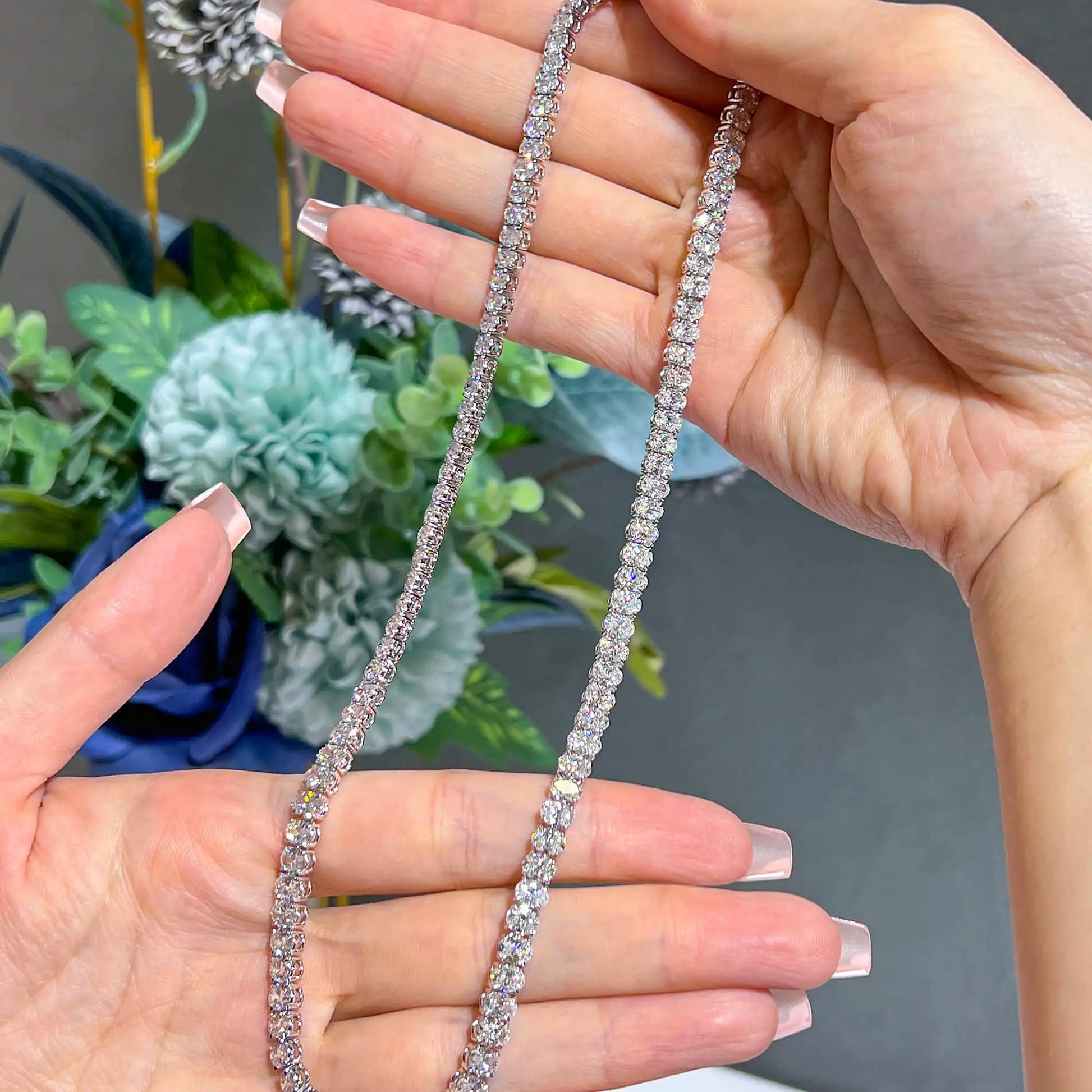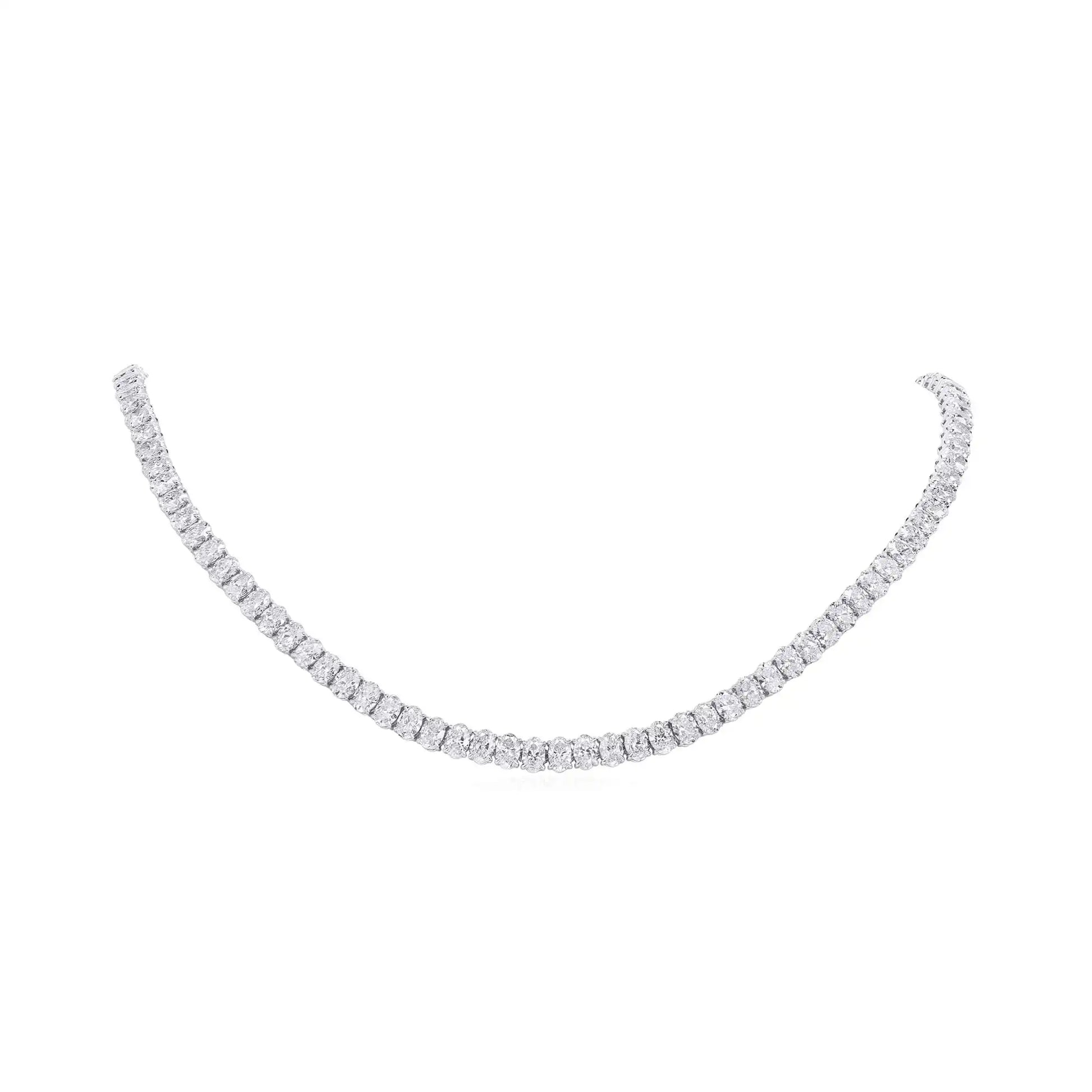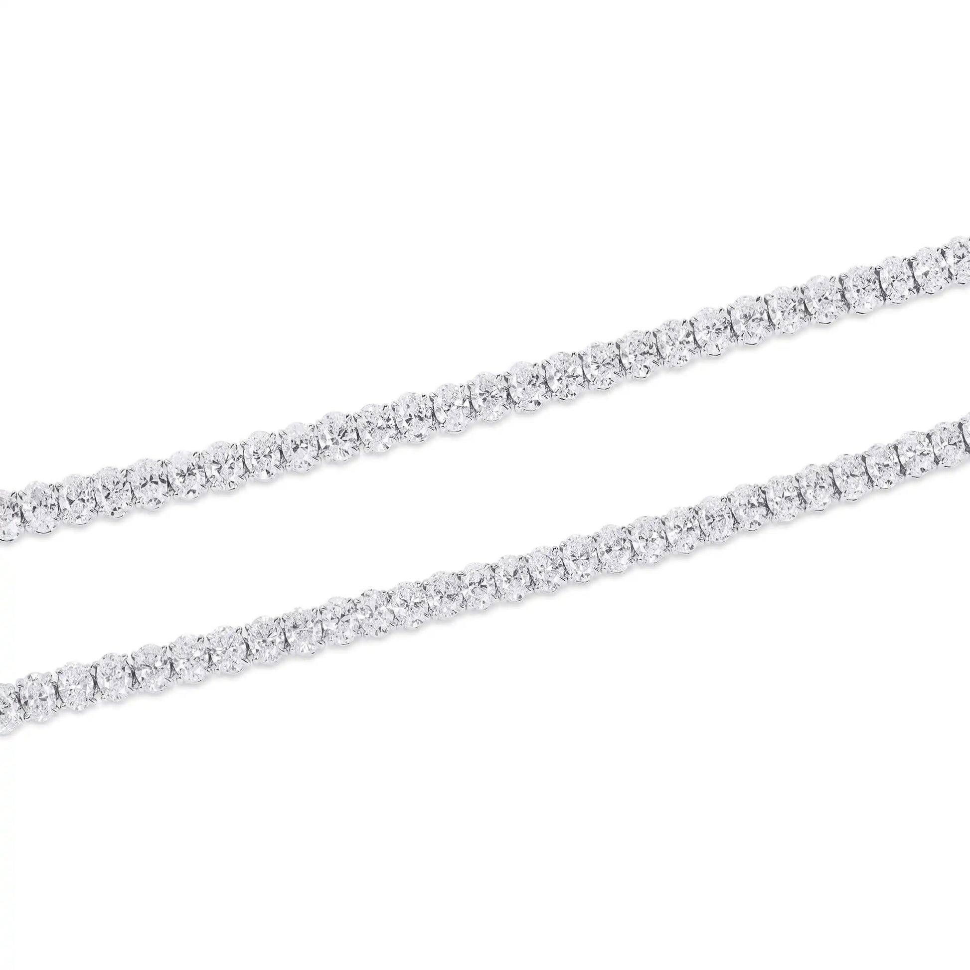 Wrap yourself in the exquisiteness of our Natural White Diamond Necklace—a work of art that perfectly combines elegance and luxury. Featuring an amazing set of 110 oval-cut white diamonds, all with VS clarity and exquisite D-F color, this necklace is a stunning discovery with an incredible total carat weight of 30.62 carats. Your neckline is elegantly accentuated by the diamonds, which are expertly placed in 18K white gold and sparkle with an ethereal luminosity. The ultimate in sophistication, this necklace is a classic piece of jewelry that brilliantly portrays the charm and radiance of real white diamonds. It's perfect as a statement piece for the most important events.