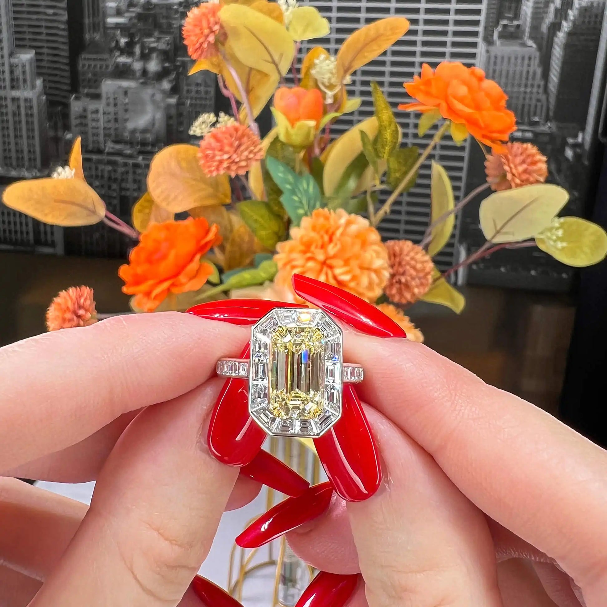 4.62 Radiant Cut Fancy-Colored light-Yellow Diamond Ring